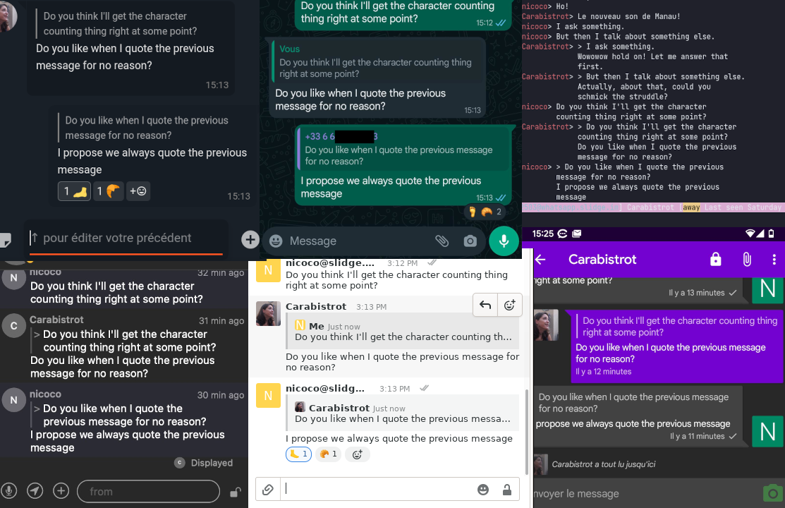 Last time I wrote here, I mentioned that deuill, a random dude from the intertubes, was working on a whatsapp slidge plugin. Well, guess what? He already nailed it.